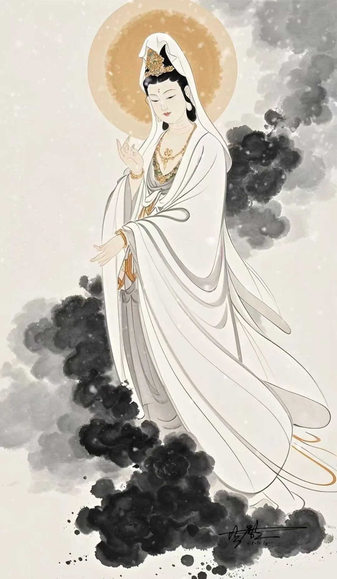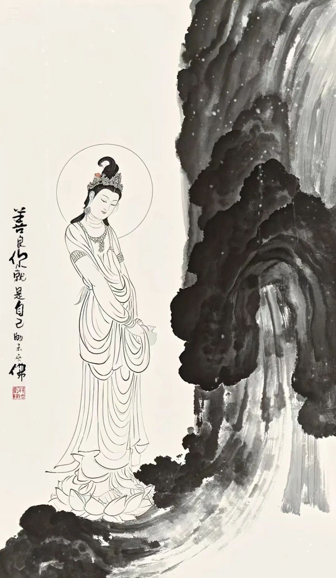 总的来说,一念法影笔下的观音画是一种艺术与宗教的完美结合,既展现了画家的艺术才华,又传达了观音的慈悲与智慧。这样的画作,不仅值得艺术爱好者们细细品味,更能成为信众们心灵上的慰藉和指引。